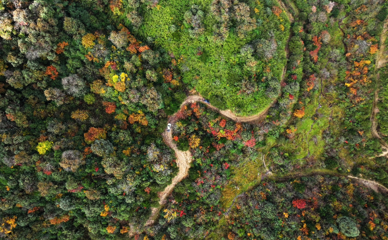 昆明:火紅楓葉勾勒詩(shī)意公園